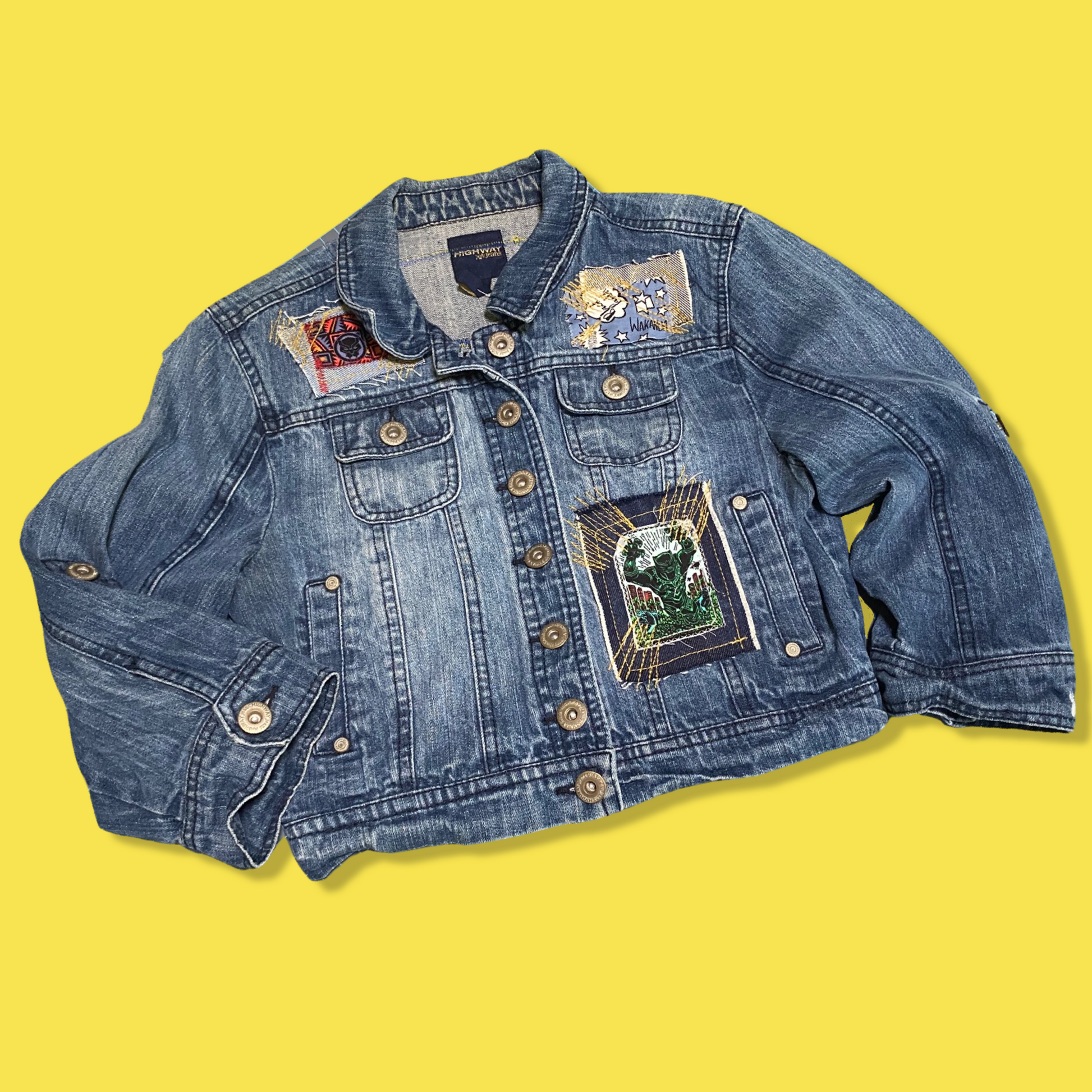 This Black Panther 1/1 jacket will ensure your child stands out in the playground. Crafted from upcycled Levi denim scraps, this unique and stylish jacket is hand-stitched to provide high-quality design and comfort. Its fresh and bold black panther print will make it a wardrobe favorite.